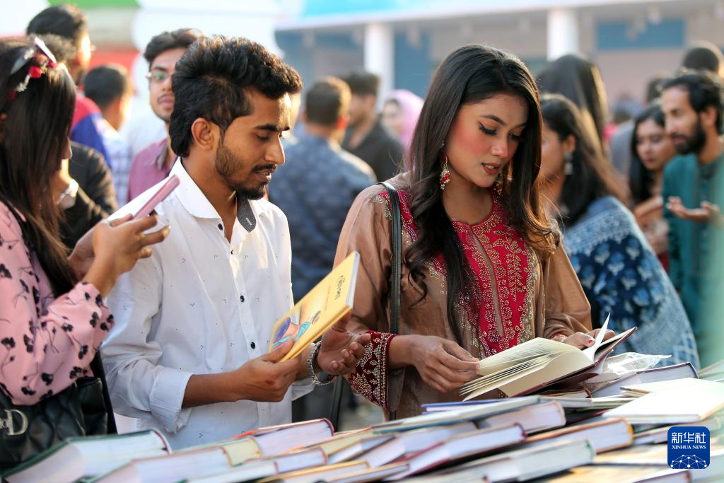 2月7日,在孟加拉国首都达卡举行的“二月书展”上,人们阅览书籍。新华社发(哈比卜·拉赫曼摄)