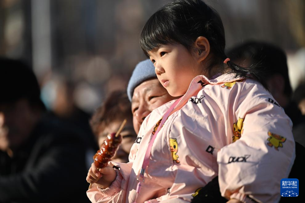 2月13日,游客在妈祖祭典(葛沽宝辇会)上观看展演。