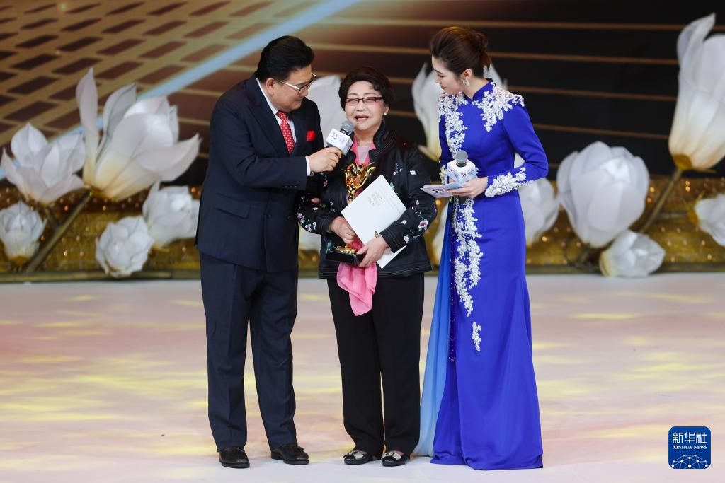 2月27日,京剧表演艺术家李炳淑(中)获得“特殊贡献奖”。