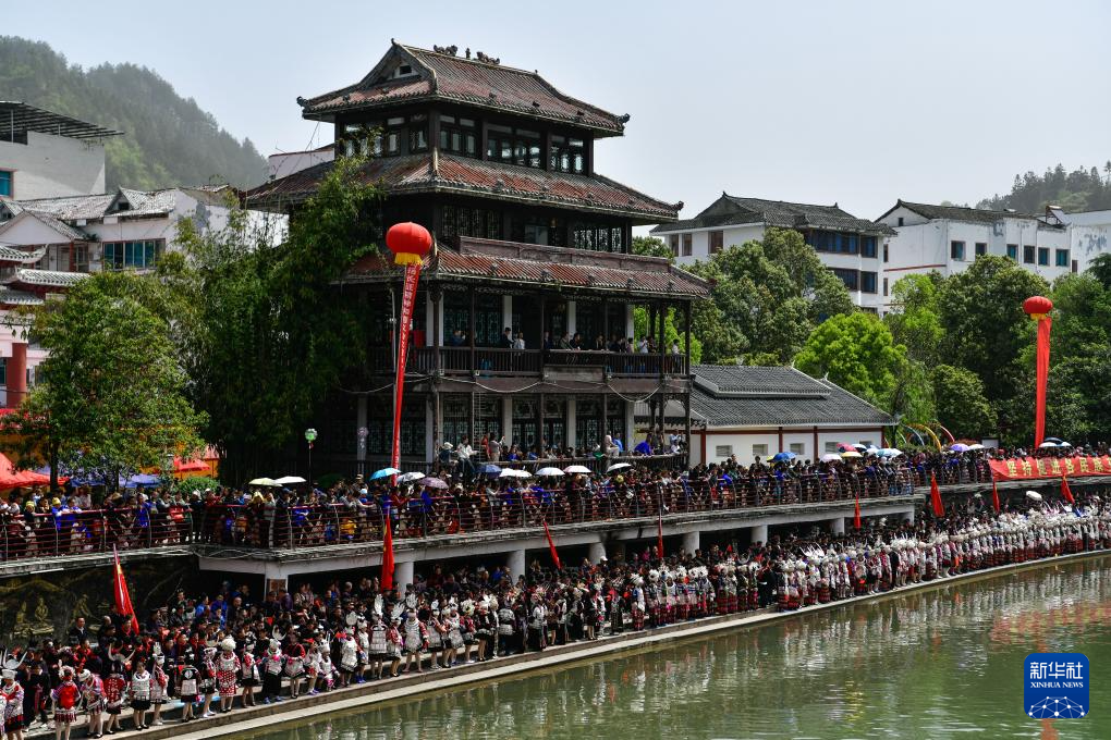 4月13日,当地群众参加苗歌对唱活动(无人机照片)。