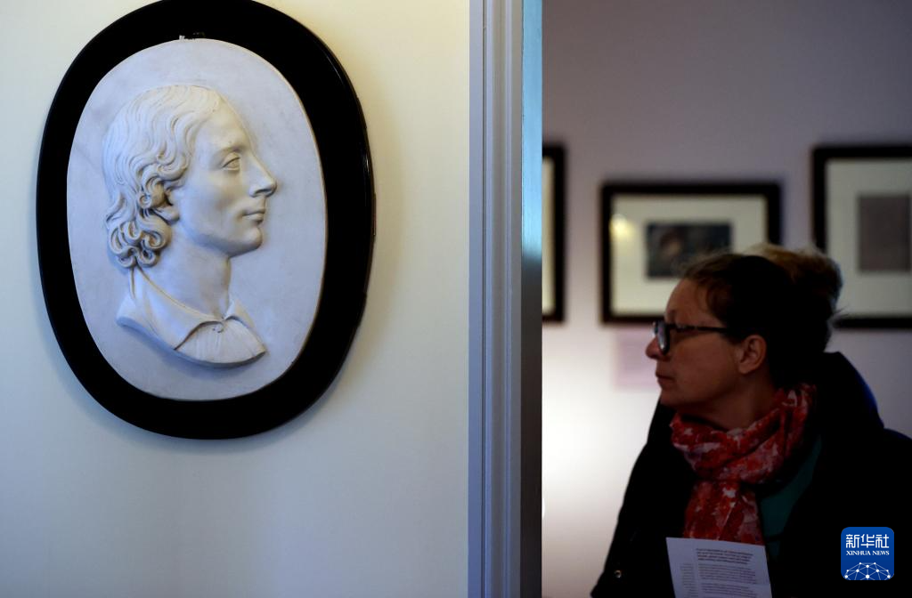 这是4月16日在英国伦敦济慈故居内拍摄的济慈雕像。
