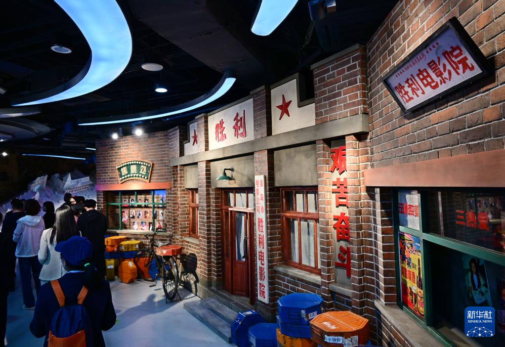4月28日,观众在青岛电影博物馆胜利电影院场景复原展区参观。