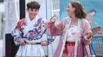 一名外国游客在永庆坊游览(5月13日摄)。
