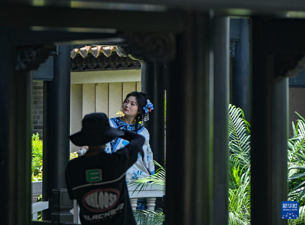 游客在永庆坊拍照(5月13日摄)。