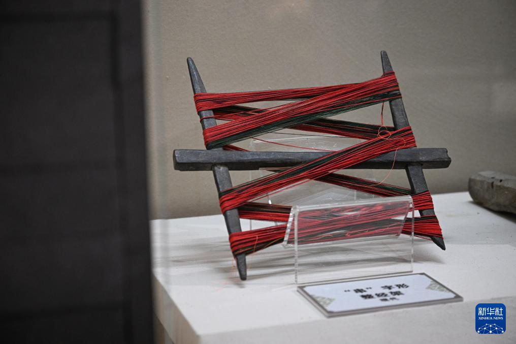 5月11日在位于海南保亭黎族苗族自治县民族博物馆拍摄的“串”字形整经架。
