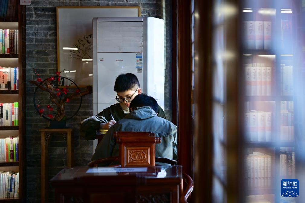 5月25日,市民在青海省西宁市香水书院内自习。