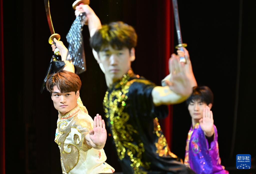 5月28日,在天津市民族文化宫,演员表演武术《龙腾虎跃》。