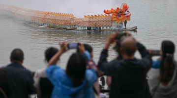 6月5日,装有彩灯的船只在澳大利亚悉尼歌剧院和海港大桥间航行。