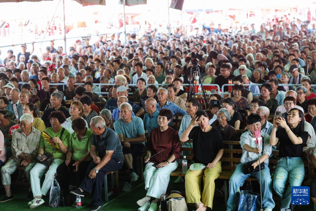 6月17日,浙江武义后陈村的百姓在观看送戏下乡演出。