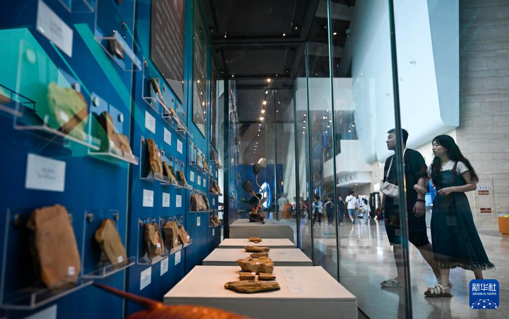 6月19日,观众在国家海洋博物馆参观“寒武纪的黎明—澄江生物群与生命多样性的起源”主题展。