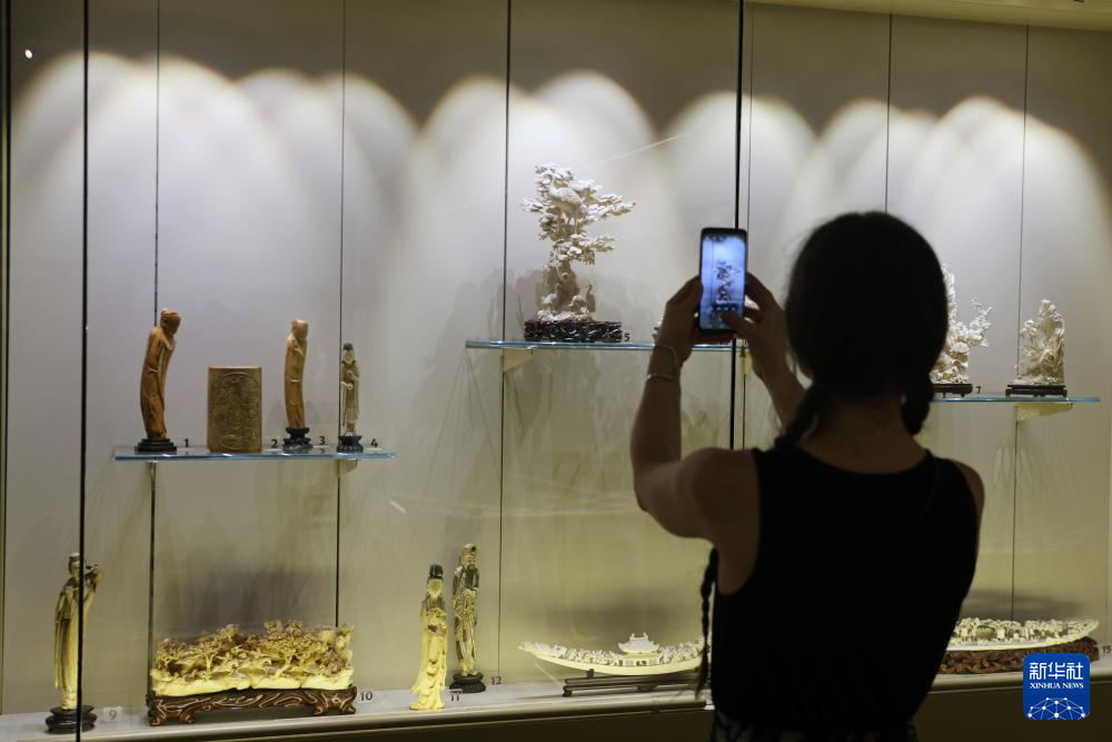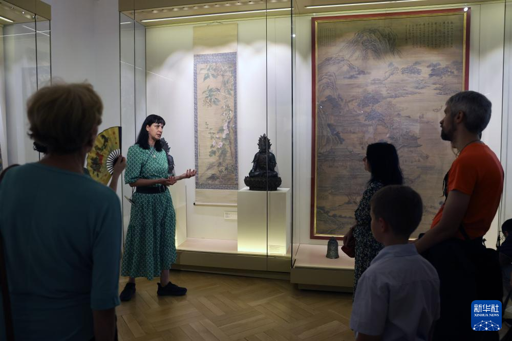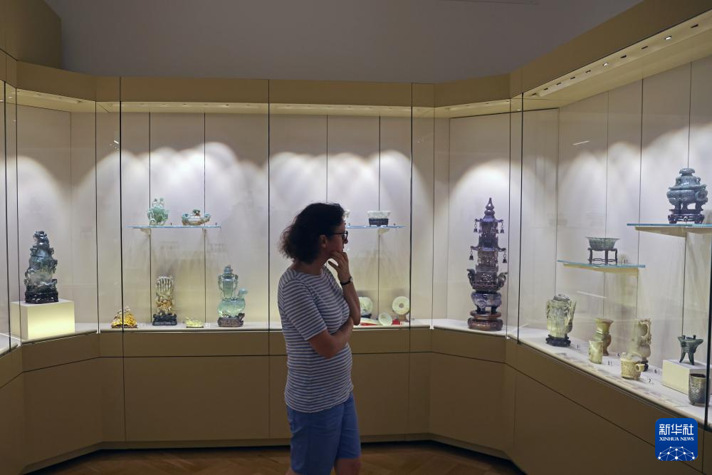 6月26日,在罗马尼亚布加勒斯特,观众参观罗马尼亚国家艺术博物馆东方艺术展厅中的中国展区。新华社发(克里斯泰尔摄)