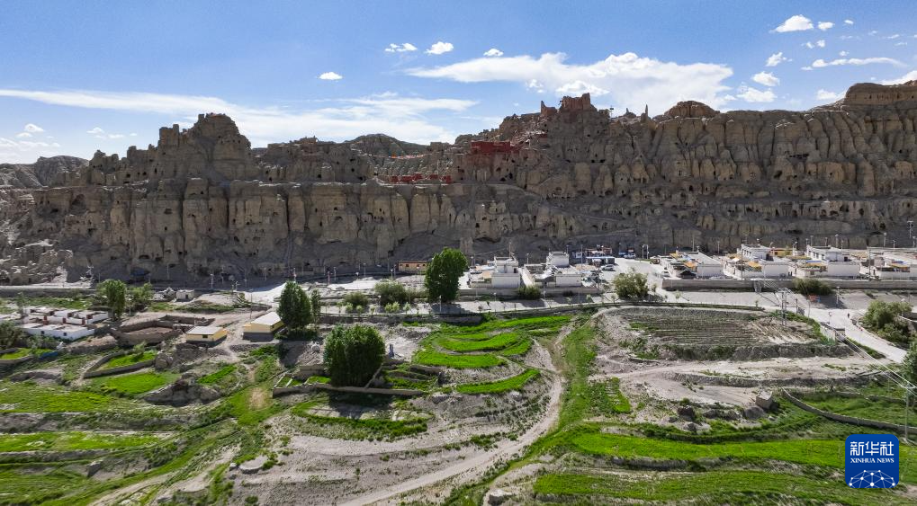 俯瞰皮央石窟群(6月24日摄,无人机照片)。