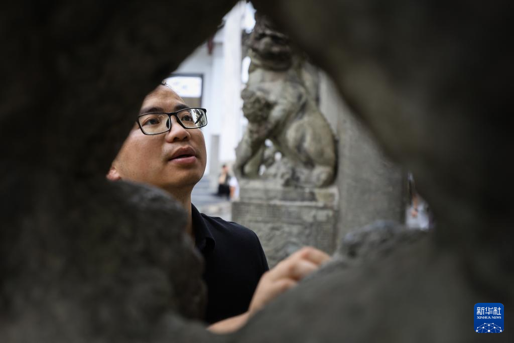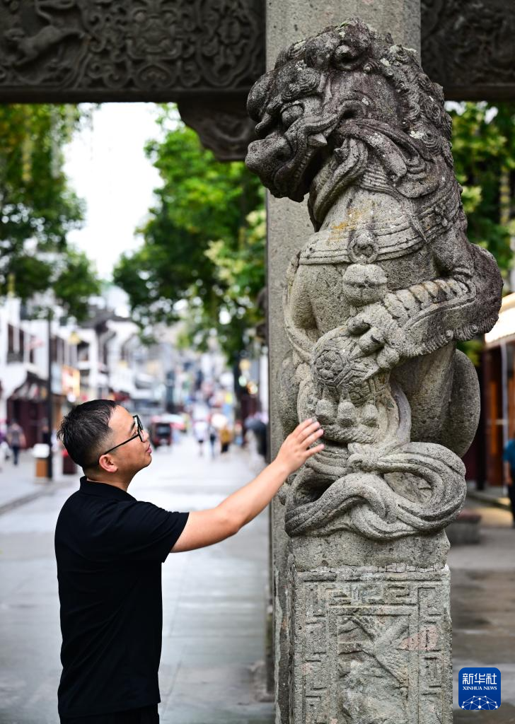 6月19日,周虎在位于歙县的全国重点文物保护单位许国石坊巡查。