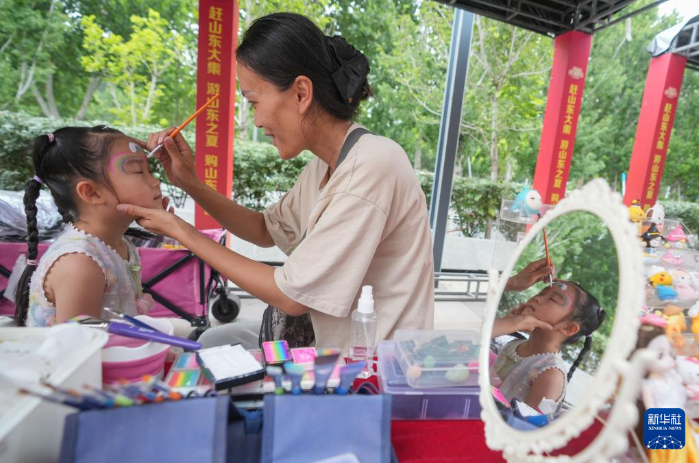 6月29日,在“黄河大集”美术市集,一名小朋友在体验面部绘画。