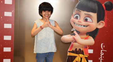 7月1日,小朋友在乌日贡主题活动现场品尝烤串。