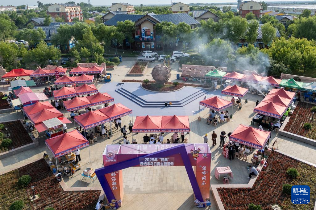当日,黑龙江省抚远市乌苏镇抓吉赫哲族村集市乌日贡主题活动在莫日根广场举行,人们在活动中品尝传统美食,感受赫哲族非遗技艺,体验乌日贡传统项目。