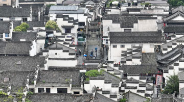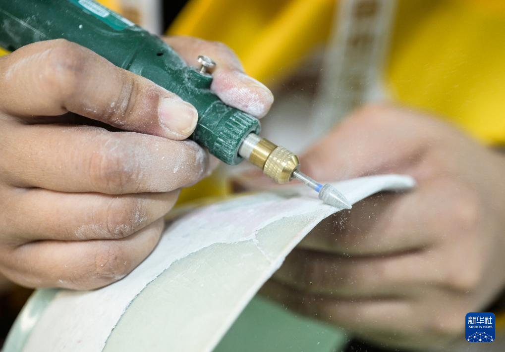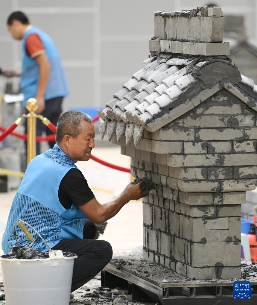 参赛选手在泥瓦作文物修复师赛区进行角逐(7月4日摄)。