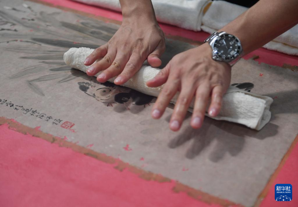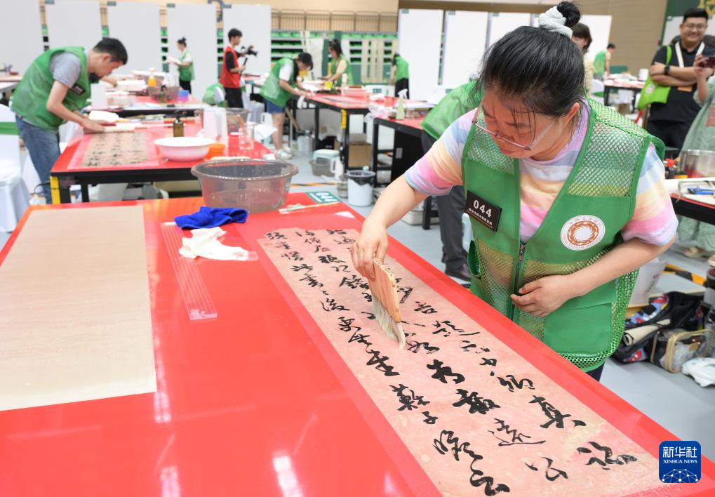 参赛选手在纸张书画文物修复师赛区进行角逐(7月4日摄)。
