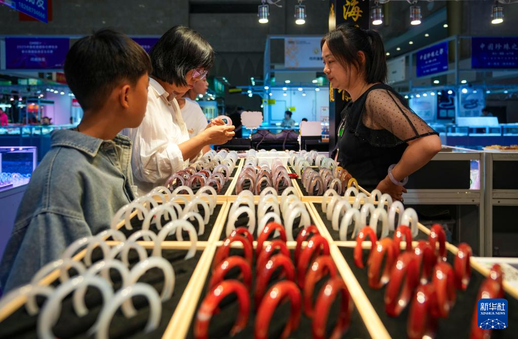 这是7月10日拍摄的昆明石博会玉石翡翠馆。