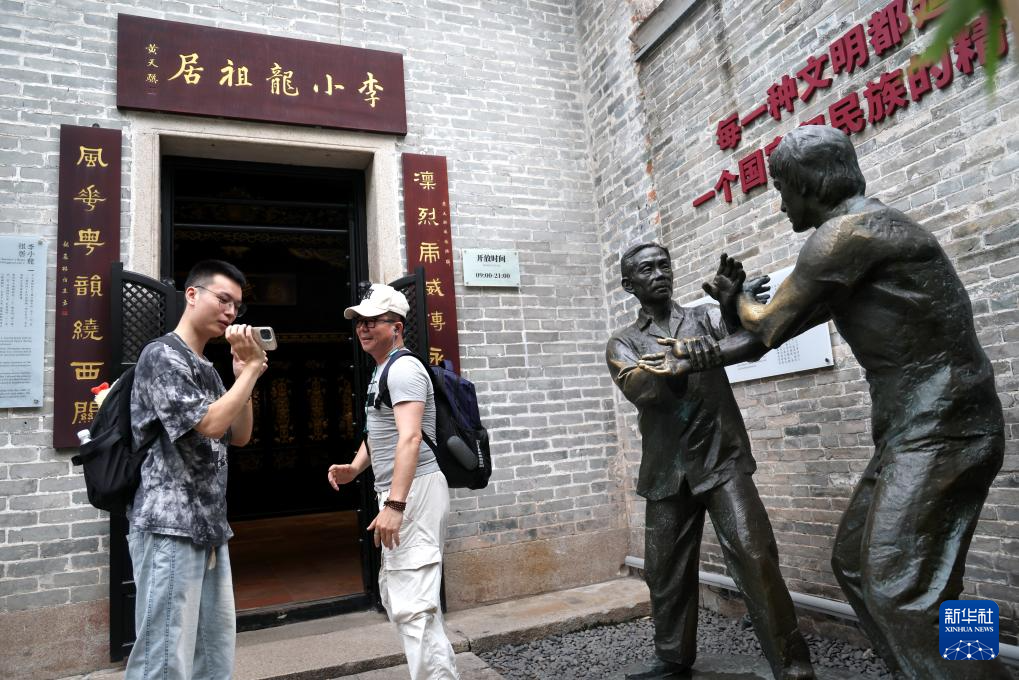 游客在永庆坊的李小龙祖居参观(7月11日摄)。