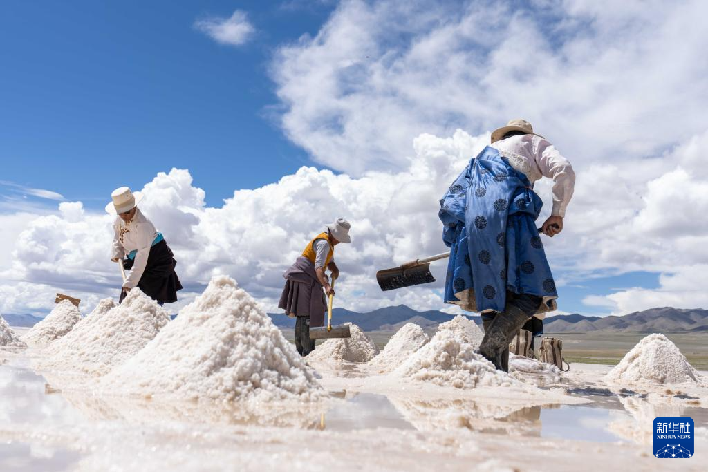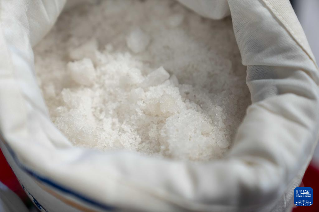 7月20日,革吉县一家粗盐加工厂工作人员在包装盐。