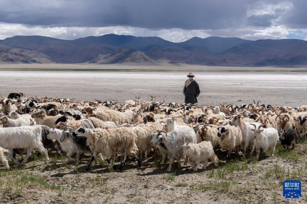 7月20日,革吉县牧民把装好的盐绑在羊身上。