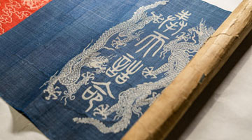 7月23日,工作人员在银川世界岩画馆研究室研究贺兰山岩画数字拓片。