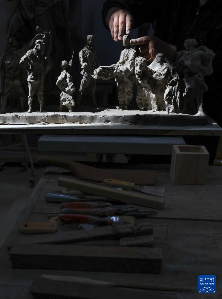 这是国防大学军事文化学院副教授王树山的雕塑作品《红色记忆》。