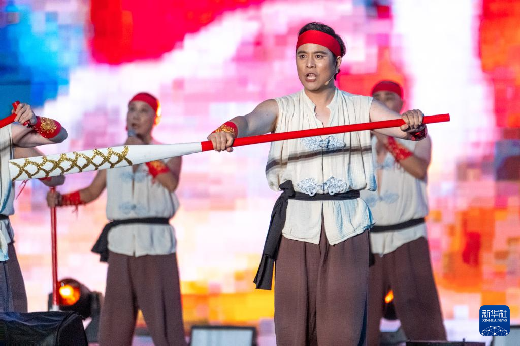 8月15日,演员们在“村歌嘹亮”2025年全国集中展演上演出。