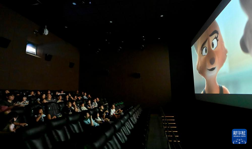 8月31日,观众在天津市滨海文化中心保利万和国际影城观影。