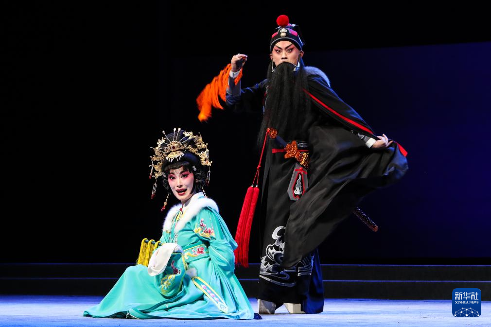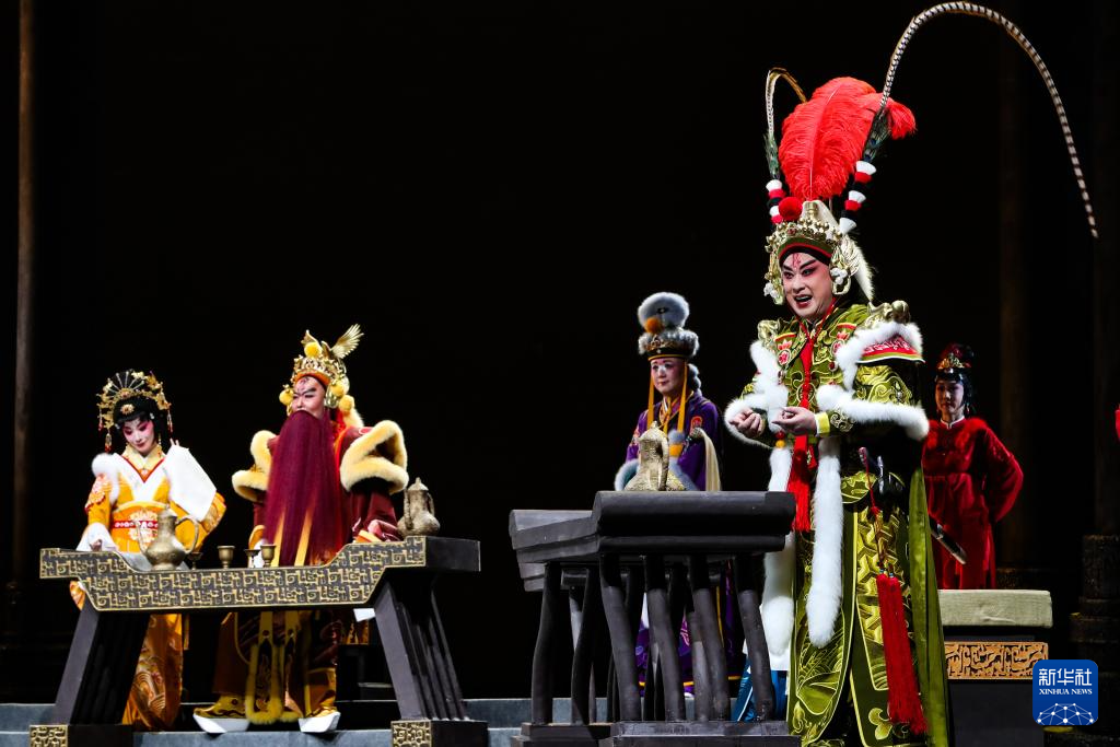 9月5日晚,演员在兰州音乐厅表演京剧《凉州辞》。
