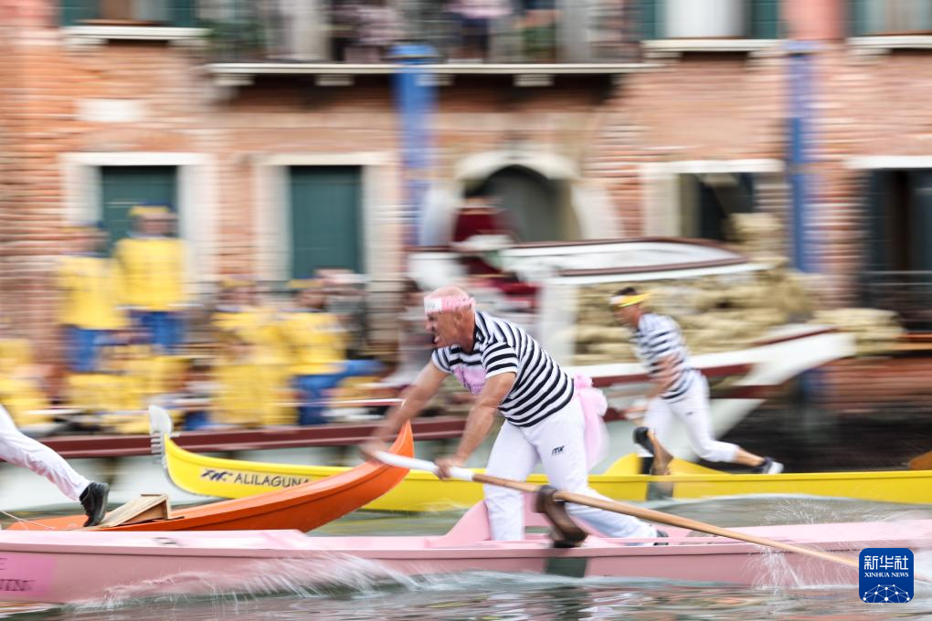 9月7日,在意大利威尼斯,人们参加赛船节。