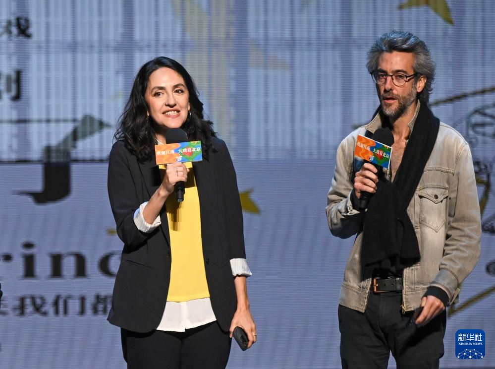 10月12日,在位于北京的中央歌剧院剧场,音乐戏剧《小王子》导演让·贝洛里尼(右)、总制作人安娜出席发布会。
