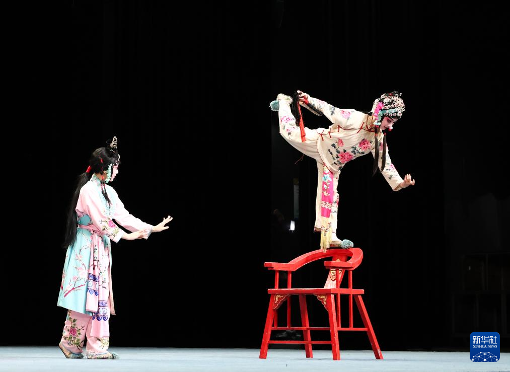 10月12日,二度“梅花奖”获得者、全国三八红旗手陈美兰(右一)在指导演员排练剧目。
