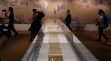 10月13日,视障人士在发布会后,欣赏无障碍版《触摸<清明上河图>》。