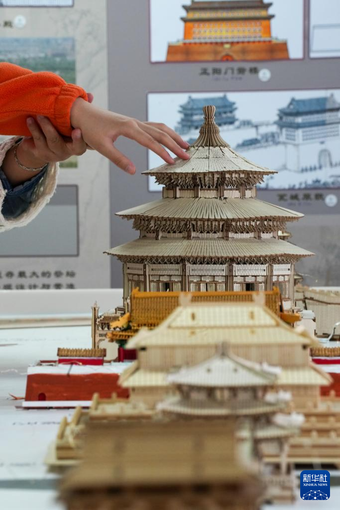 10月13日,视障人士在发布会后,触摸北京中轴线建筑模型。