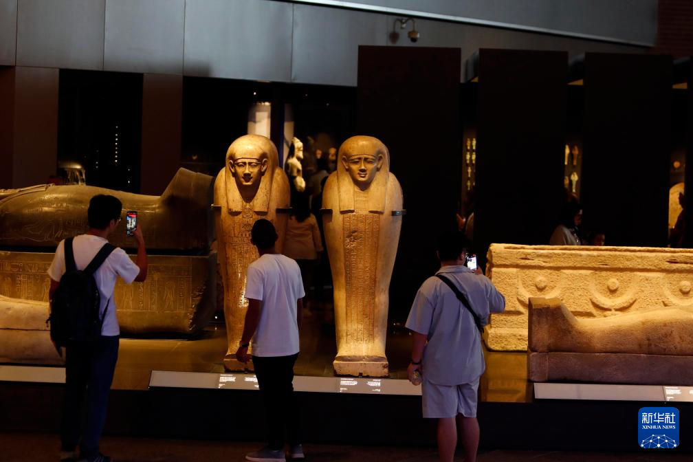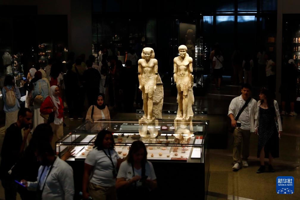 10月14日,游客在位于埃及吉萨省的大埃及博物馆参观。