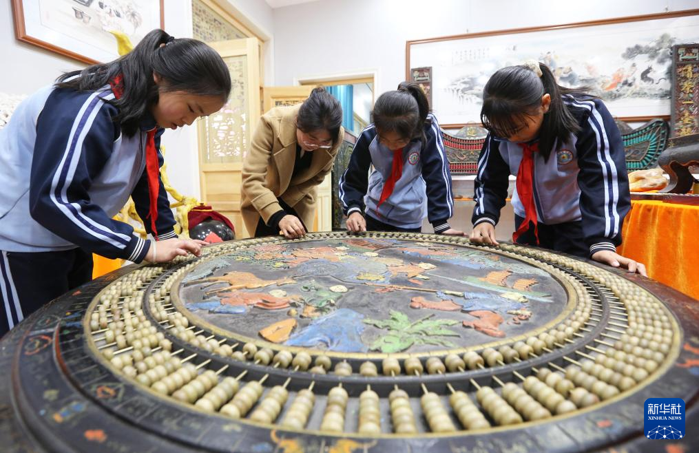 10月14日,陇西县红星小学学生在程万里的算盘非遗体验基地参观。
