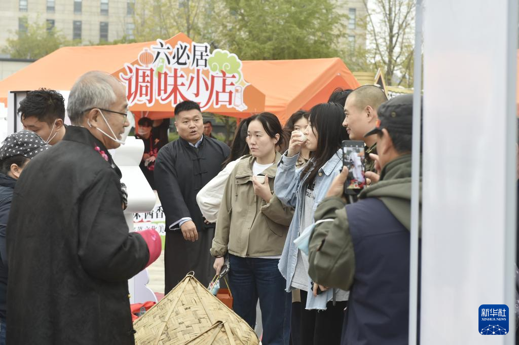 10月16日,观众在活动现场品尝米醋。