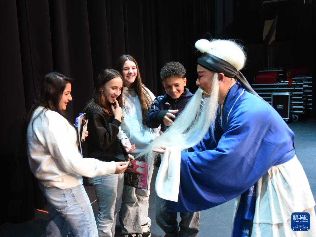 10月16日,在奥地利艾森施塔特,演员在秦腔《再续红梅缘》演出结束后与观众互动。