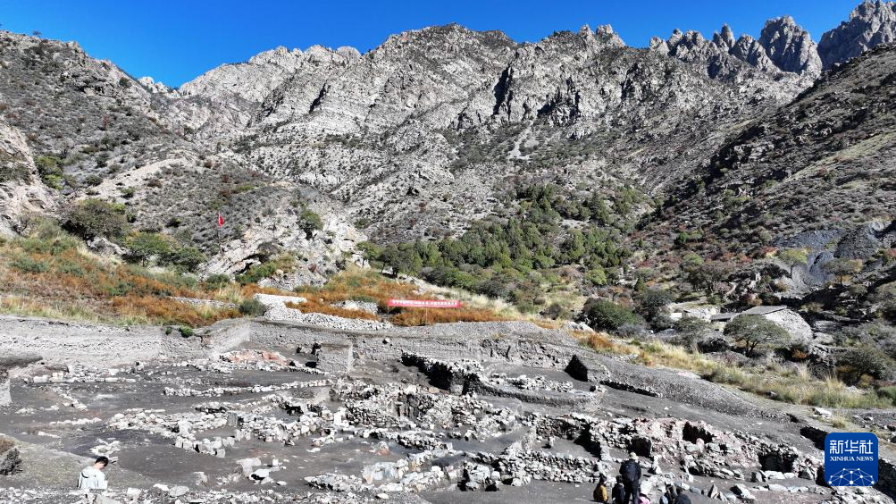 这是位于宁夏回族自治区贺兰山苏峪口内的西夏瓷窑址2024-2025年度发掘区(无人机照片,10月13日摄)。