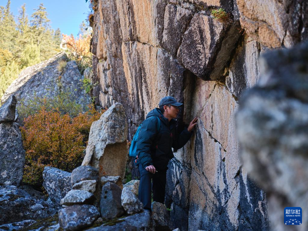 10月21日,陈雪松实地调查海子山老林沟拉托扎岩画。
