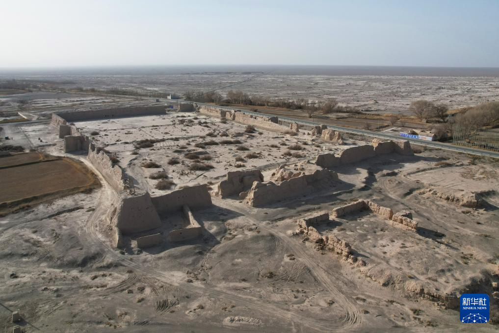 这是11月18日在甘肃省酒泉市瓜州县锁阳城镇常乐村拍摄的破城子遗址(无人机照片)。