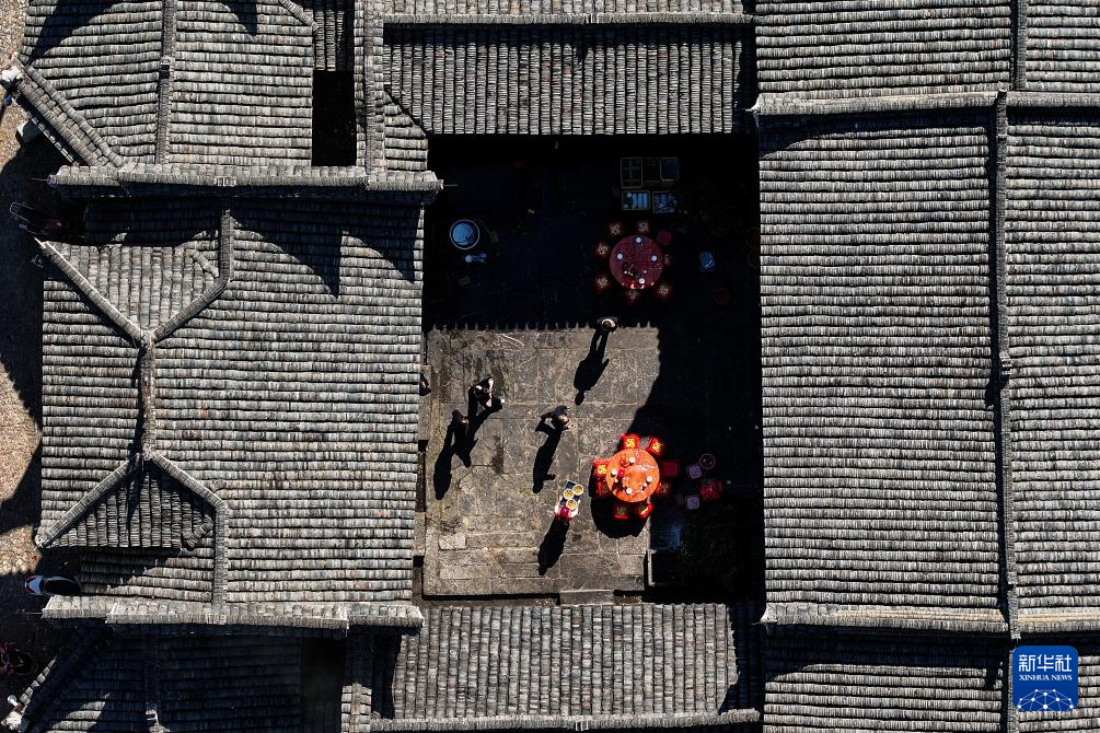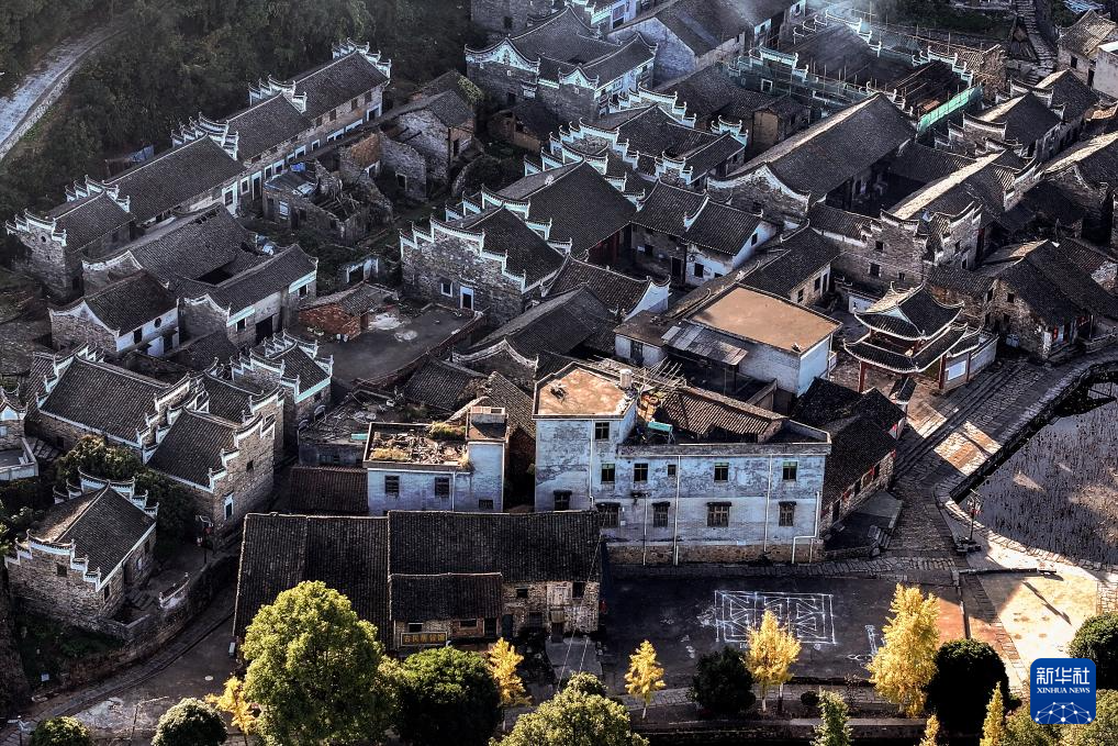 11月24日,人们在郴州汝城县金山村一处古祠堂内(无人机照片)。