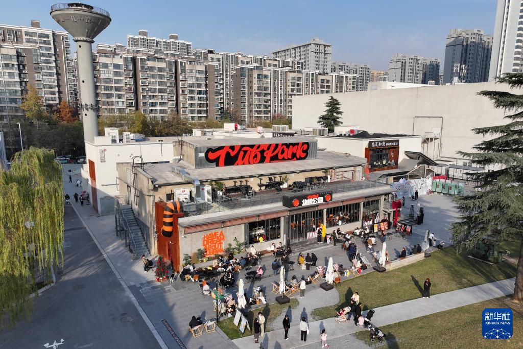 12月4日,游人在西安时光文化公园消费休闲(无人机照片)。这座公园是由西安国营第一钟表机械厂旧厂区改建而来的。