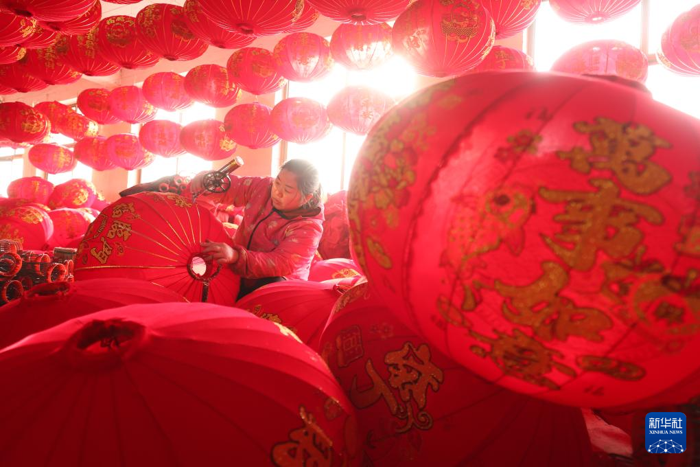 12月10日,工人在河北省石家庄市藁城区屯头村一家宫灯厂制作宫灯。