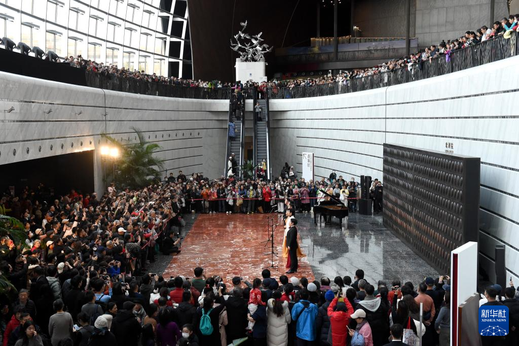 12月22日,演员在国家大剧院公共空间与观众互动。