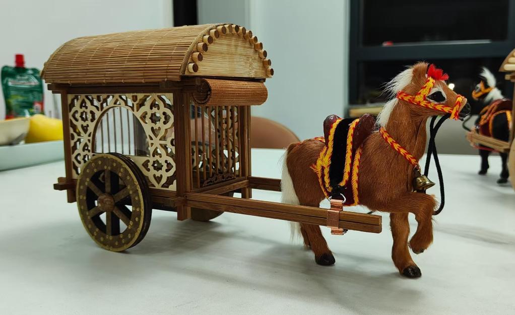 进入腊月,年味渐浓。在众多非遗文创产品中,马的形象通过各种传统技艺被生动呈现出来。在河北省衡水市武邑县,县级非物质文化遗产项目张氏竹艺扎刻技艺传承人张春晖精心推出扎香载韵马车、竹艺扎刻仿古宫灯等马年主题扎刻文创产品,让传统竹艺邂逅生肖年味。