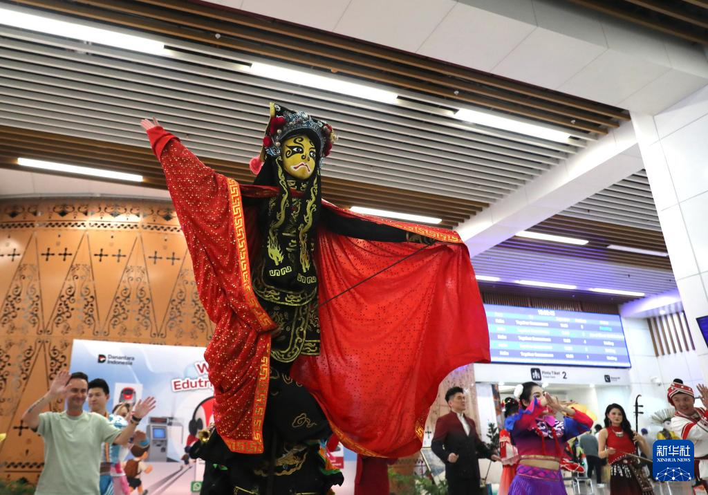 来自广西歌舞剧院、广西戏剧院的演员2月4日在印度尼西亚雅加达雅万高铁哈利姆站上演“马上有福”城市快闪活动,传递浓厚的农历春节气氛。