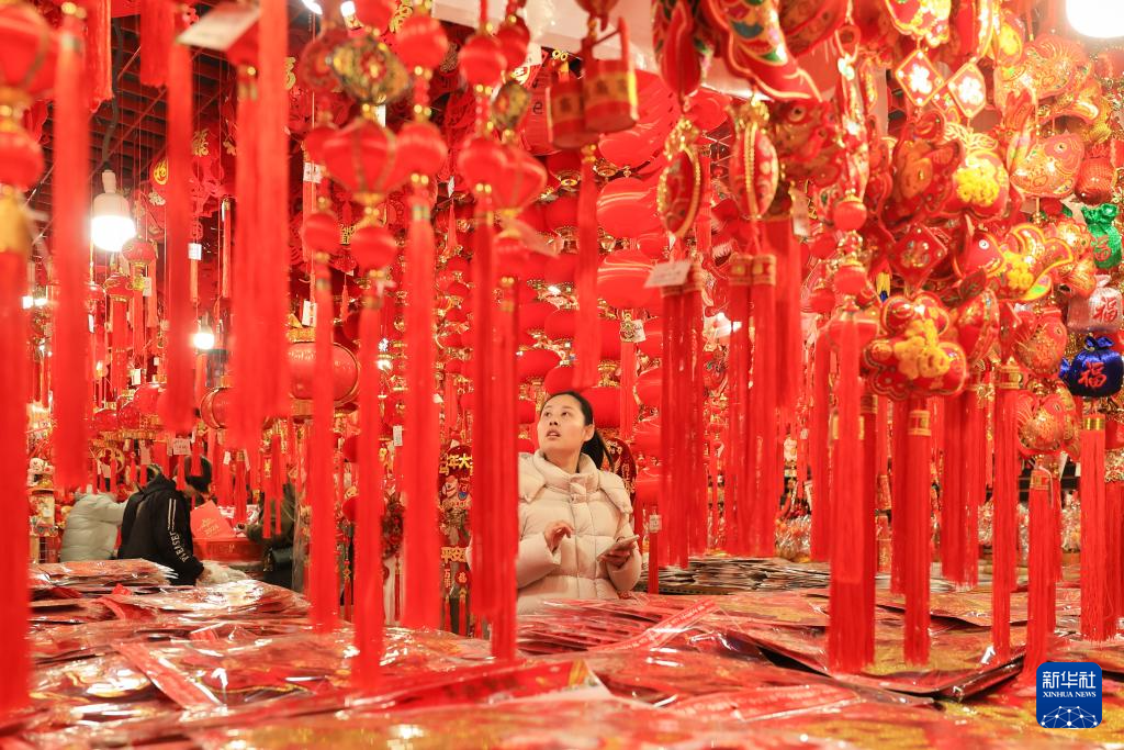 2月10日,市民在南京一家商贸城内选购春节饰品。